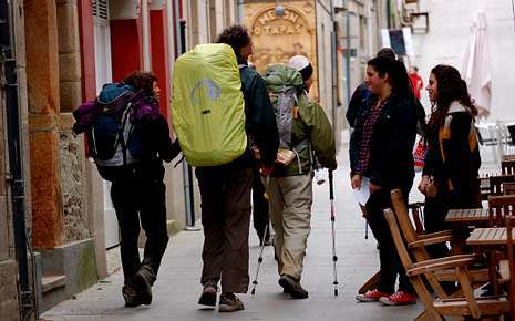 viajeros en su camino a Santiago de Compostela antes de dejar la comarca