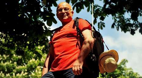 Caranza, donde fue profesor de máquinas y motores, es un gran caminante. El primero de mayo partió de Sevilla, a las seis de la mañana, rumbo a Santiago de